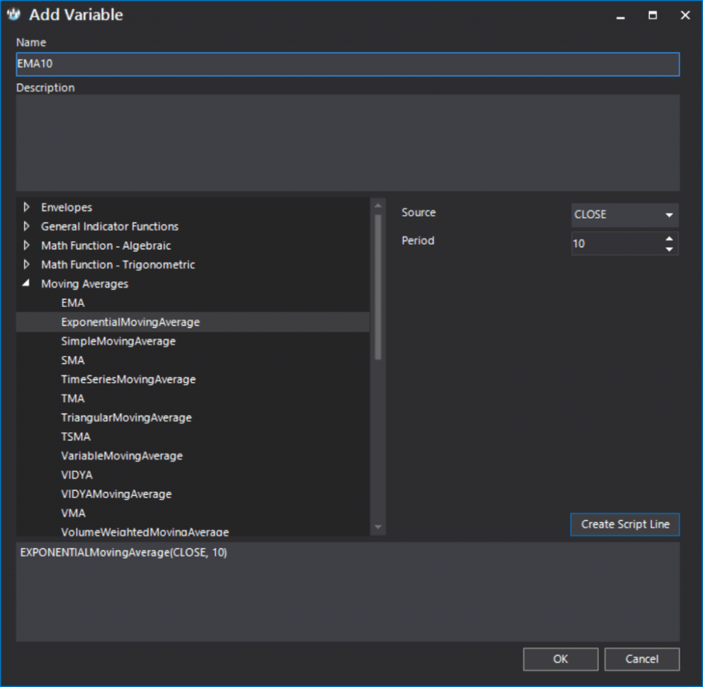 - SET EMA10 = ExponentialMovingAverage(CLOSE,10)