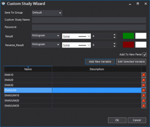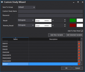 Custom studies can be easily managed and re-arranged in groups by mere drag-and-drop inside the Quant Script Studies dialog. Both the editor-based and the wizard-based ones can be password protected in which case their users will be able to use them inside the S-Trader platform but not see their content.