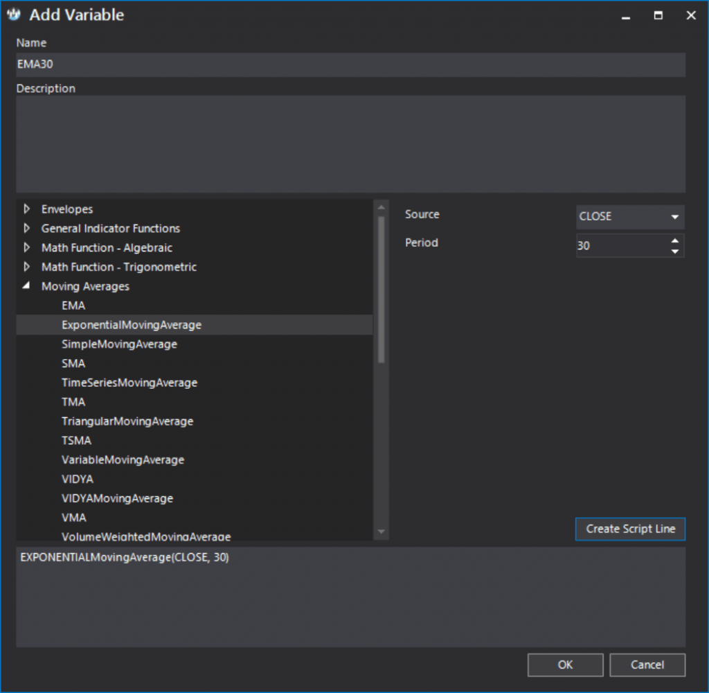 - SET EMA30 = ExponentialMovingAverage(CLOSE,30)